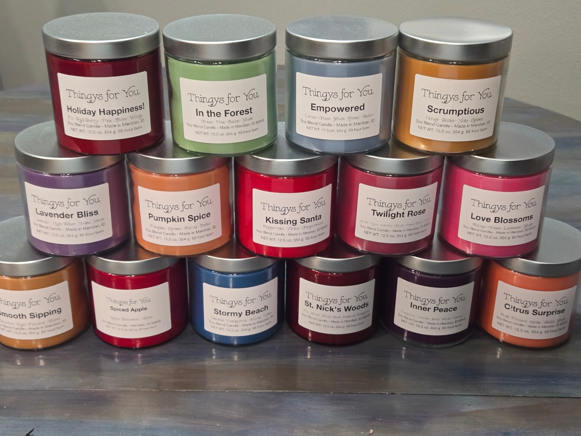 Welcome to the Thingys for You online store. Browse our selection of hand-poured candles and artisan-crafted gifts. We offer physical pick-up of online orders at our Meridian, Idaho location after Feruary 6, 2026. Find the perfect item for yourself or a thoughtful gift for someone special.